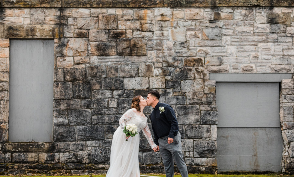 The judge met us outside where he greeted us masked up and with a bottle of hand sanitizer ready. The guests gathered around hoping to get a good view of the ceremony. The first kiss as a couple seemed all the more dramatic as they flung off their masks to sneak a quick but loving kiss!